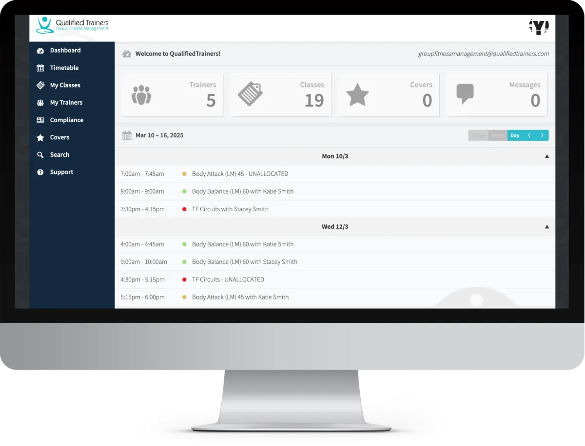 Register now and gain access to the QT platform for free. Invite your instructor community, set your compliance requirements and build your timetable to allow cover-management. Have a question? Book a demo below with the team.